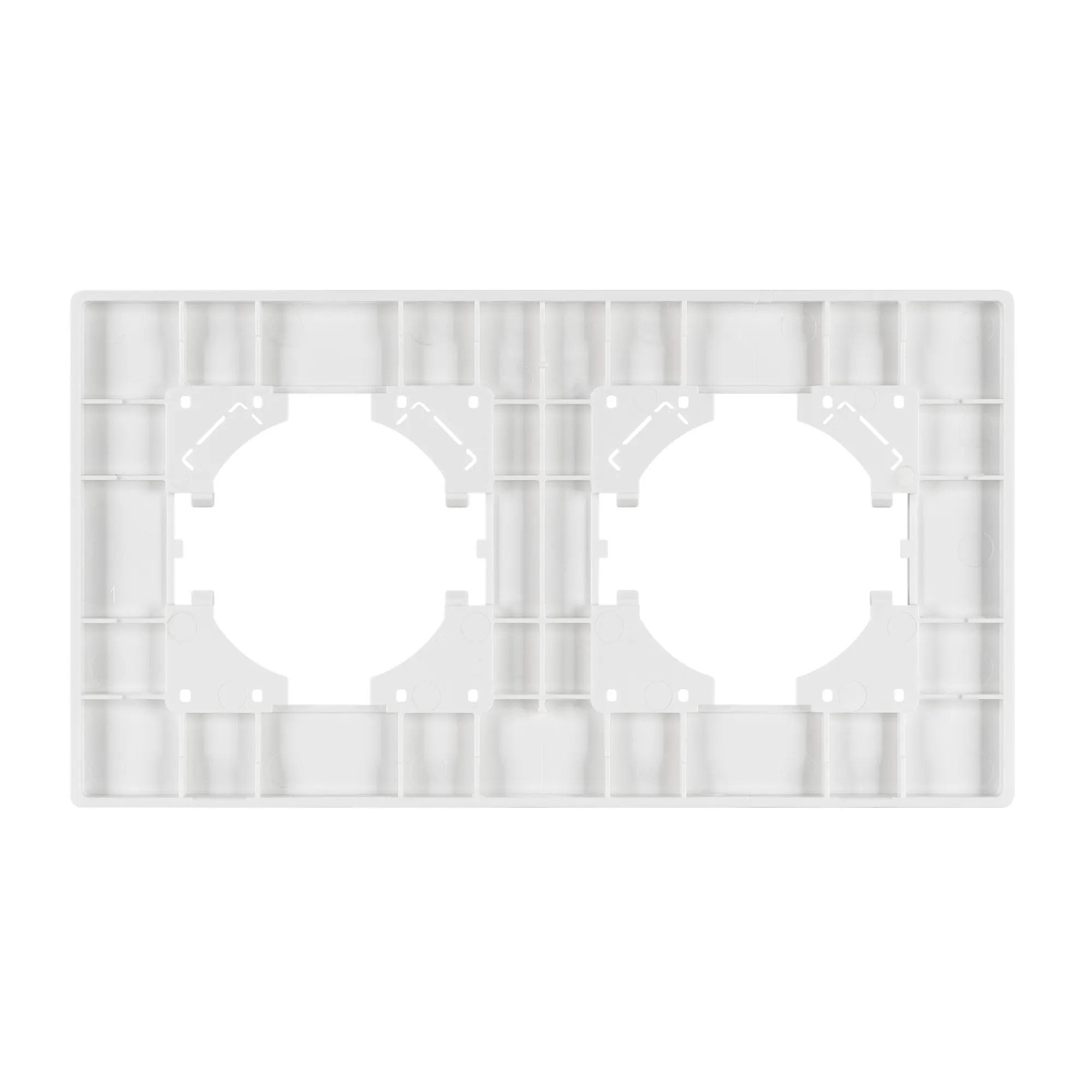 Рамка пластиковая на 2 поста, под встраиваемый механизм. Цвет - серый. Среднего уровня герметичности IP20.Ориентация монтажа - горизонтальная (основным ориентиром служат посадочные выступы для накладки механизма).