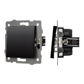 Механизм выключателя света клавишный на 1 пост 1 возвратная клавиша. Цвет - черный. Без фронтальной рамки. Уровень пылевлагозащиты IP20. Выключатель устанавливается в стандартный круглый подрозетник.
