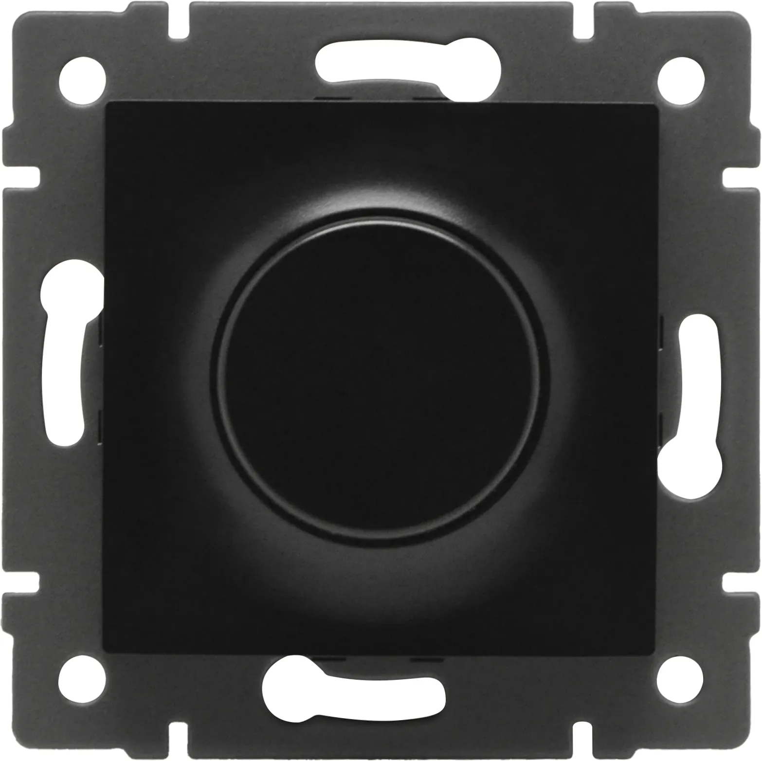 Механизм регулировки света на 1 пост. Цвет - черный. Без фронтальной рамки. Уровень пылевлагозащиты IP20. Механизм устанавливается в стандартный круглый подрозетник. Максимальная нагрузка 500 Вт только для ламп накаливания и галогенных, 150 Вт только для энергосберегающих и светодиодных ламп. Габаритные размеры: длина 71 мм, ширина 71 мм, высота 52 мм. Гарантийный срок 10 лет.