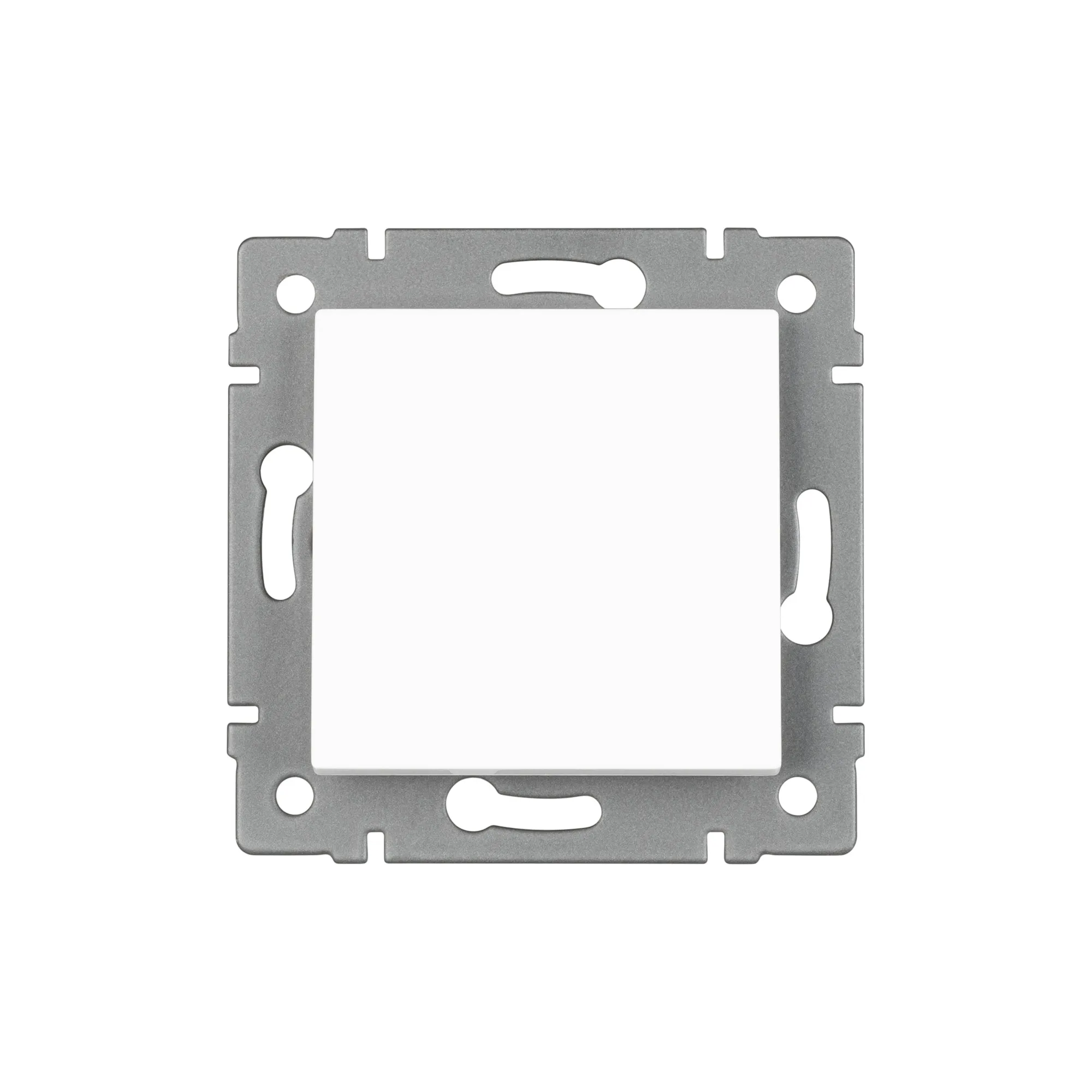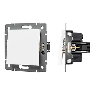 Механизм выключателя света клавишный на 1 пост 1 клавиша (непроходной). Цвет - белый. Без фронтальной рамки. Уровень пылевлагозащиты IP20. Выключатель устанавливается в стандартный круглый подрозетник.