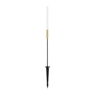 Уличный декоративный светодиодный светильник. Мощность 0.5 Вт, св. поток 15 лм, 105 лм/Вт, теплый 3000 K, CRI>80, угол излучения 160°, напряжение питания 24 В. Черный корпус из алюминия, прозрачный матовый рассеиватель из стекла. Степень защиты IP65. Размер: диаметр 15 мм, высота 400 мм, высота углубления 160 мм. Монтаж в грунт с помощью основания пика (входит в комплект поставки). Драйвер приобретается отдельно.