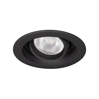Встраиваемый карданный светильник. Мощность 12 Вт, св. поток 1394 лм, 116 лм/Вт, дневной 4000 K, CRI>92, угол 40°, напряжение питания 230 В. Чёрный корпус из алюминия, чёрная вставка, степень защиты IP20. Размер: диаметр 90мм, высота 80 мм. Монтаж встраиваемый, установочное отверстие: диаметр 75мм. Драйвер 27-40 В, 300 мА, пульсация <2%.