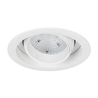 Встраиваемый карданный светильник. Мощность 30 Вт, св. поток 2650 лм, 88 лм/Вт, дневной 4000 K, CRI>92, угол 50°, напряжение питания 230 В. Белый корпус из алюминия, белая вставка, степень защиты IP20. Размер: диаметр 135 мм, высота 125 мм. Монтаж встраиваемый, установочное отверстие: диаметр 120 мм. Драйвер 24-42 В, 750 мА, пульсация <2%.