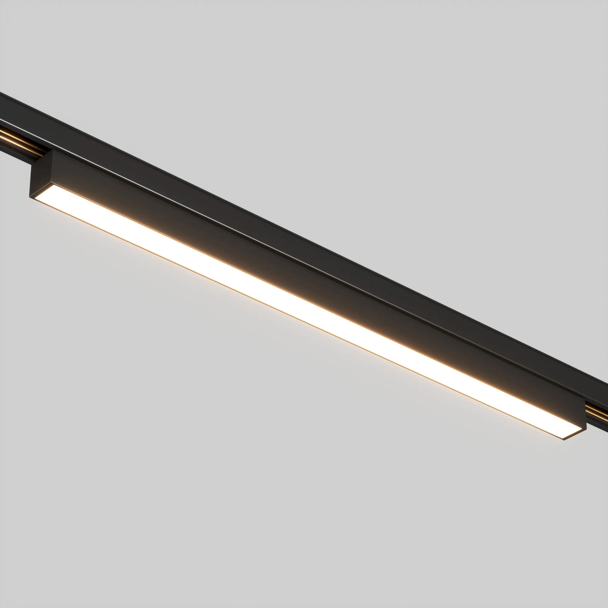 Светильник для магнитных треков MAG-ORIENT шириной 26 мм с управлением DALI(DT8) и изменяемой цветовой температурой. Мощность 16 Вт, св. поток 1200-1300 лм, 75-82 лм/Вт, изменяемая цветовая температура 2700-6500 K, CRI>90, угол 80°, напряжение питания 48 В. Черный прямоугольный корпус из металл, экран поликарбонат, степень защиты IP20. Размер: длина 465 мм, ширина 22 мм, высота 42 мм. Монтаж на трек MAG-ORIENT. Пульсация <1%.