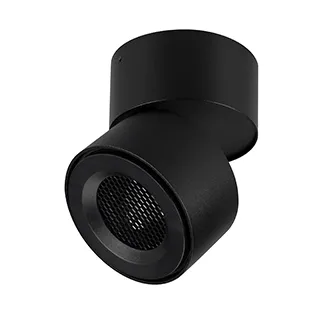 Накладной откидной поворотный светильник с изменяемой цветовой температурой. Мощность 12 Вт, св. поток с решеткой honeycomb 960 лм, св. эффективность 80 лм/Вт, теплый 2700 K, теплый 3200 K, дневной 4000K (переключается), CRI>90, угол свечения 36°, угол поворота 360°, угол наклона 90°. Черный круглый корпус из алюминия, степень защиты IP20. Размер: диаметр Ø85 мм, высота 95 мм. Питание AC 220-240V, 12Вт, драйвер встроенный (300mA, 27-43V). Пульсация <1%.