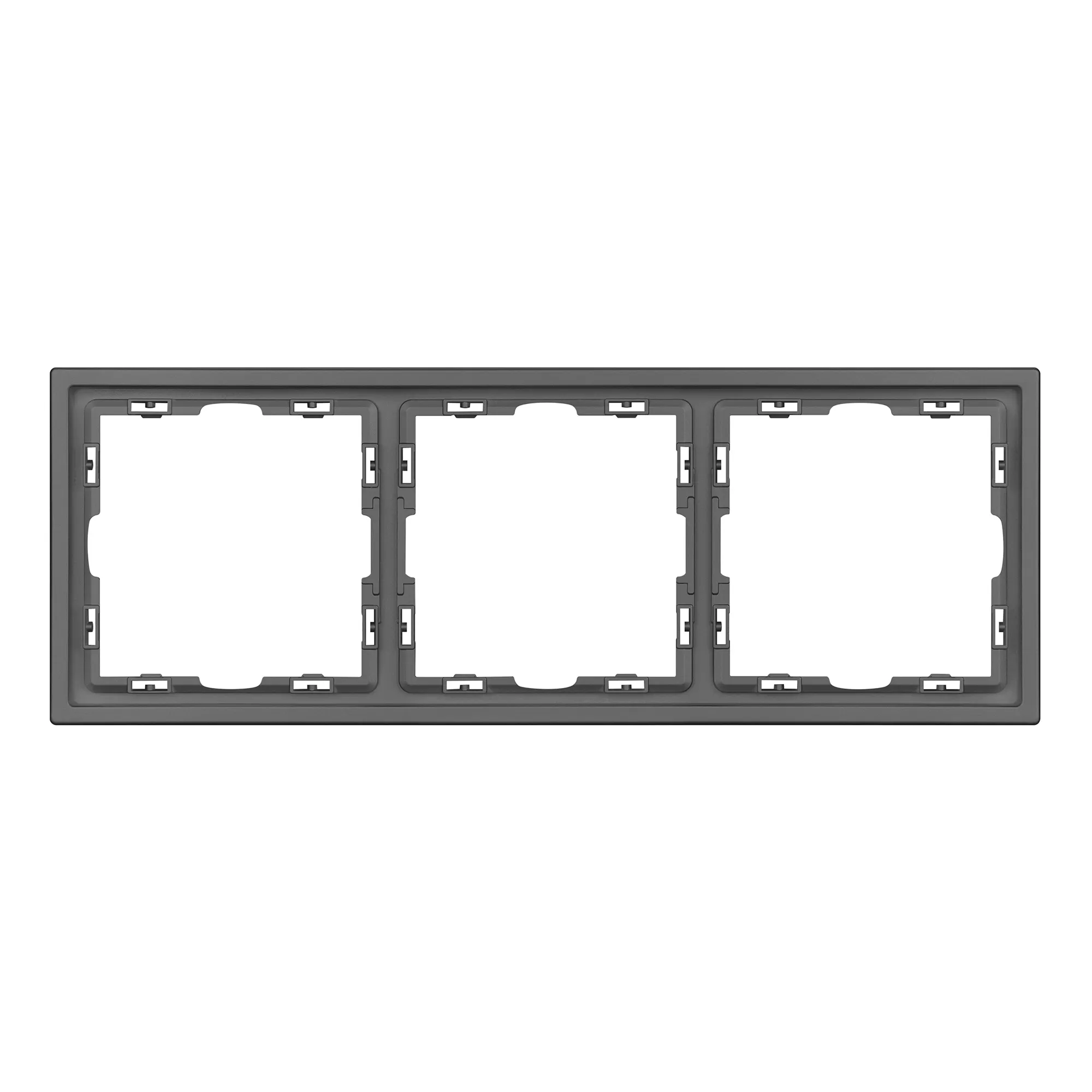 Рамка пластиковая на 3 поста, под встраиваемый механизм. Цвет - серый, с Soft-Touch покрытием. Среднего уровня герметичности IP20. Ориентация монтажа горизонтальная.