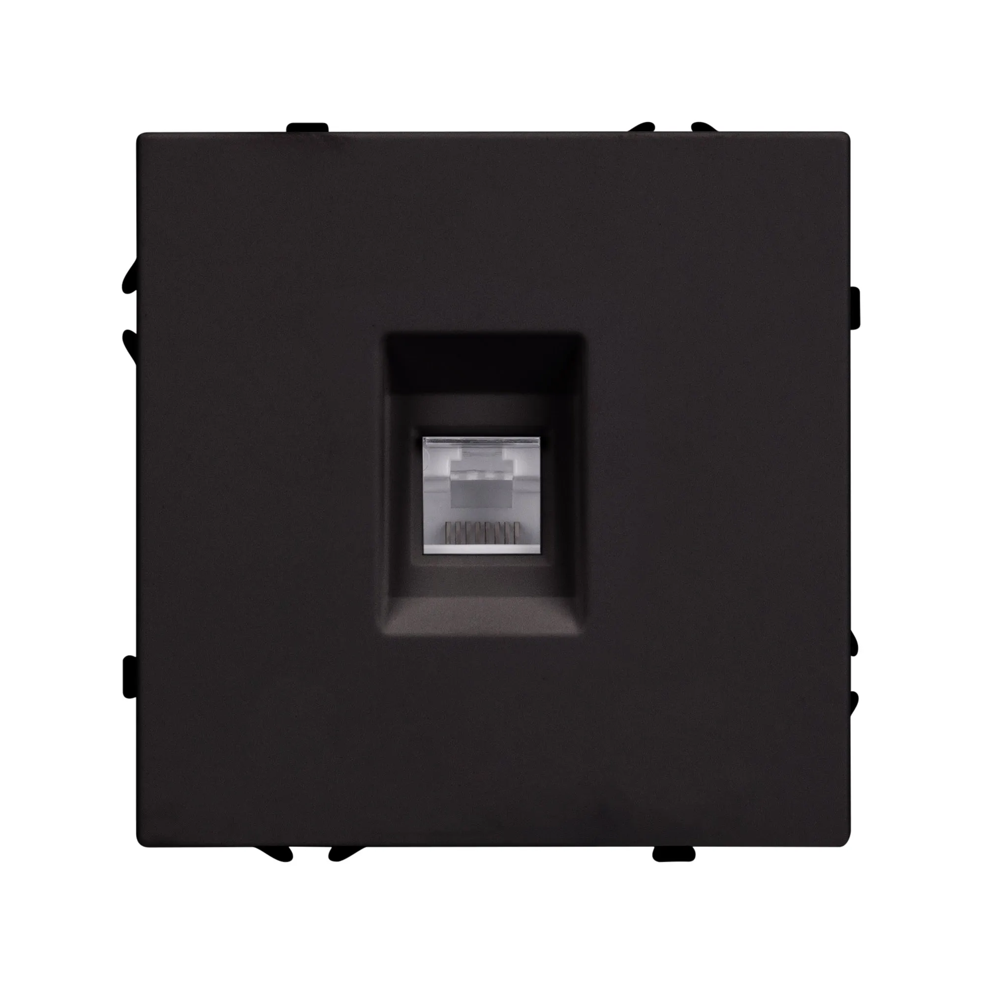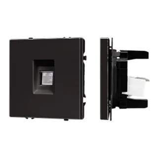 Механизм компьютерной розетки на 1 пост 6-й категории. Цвет - черный, с Soft-Touch покрытием. Без фронтальной рамки. Уровень пылевлагозащиты IP20. Тип подключаемого разъема - RJ45. Розетка устанавливается в стандартный подрозетник круглого сечения диаметром 60мм.
