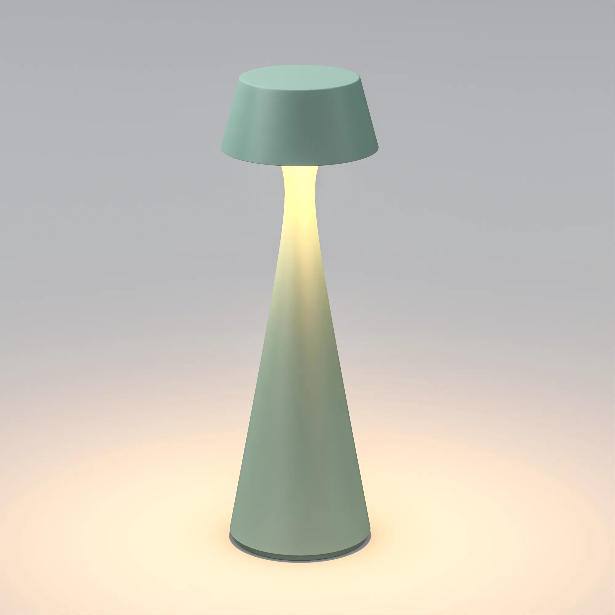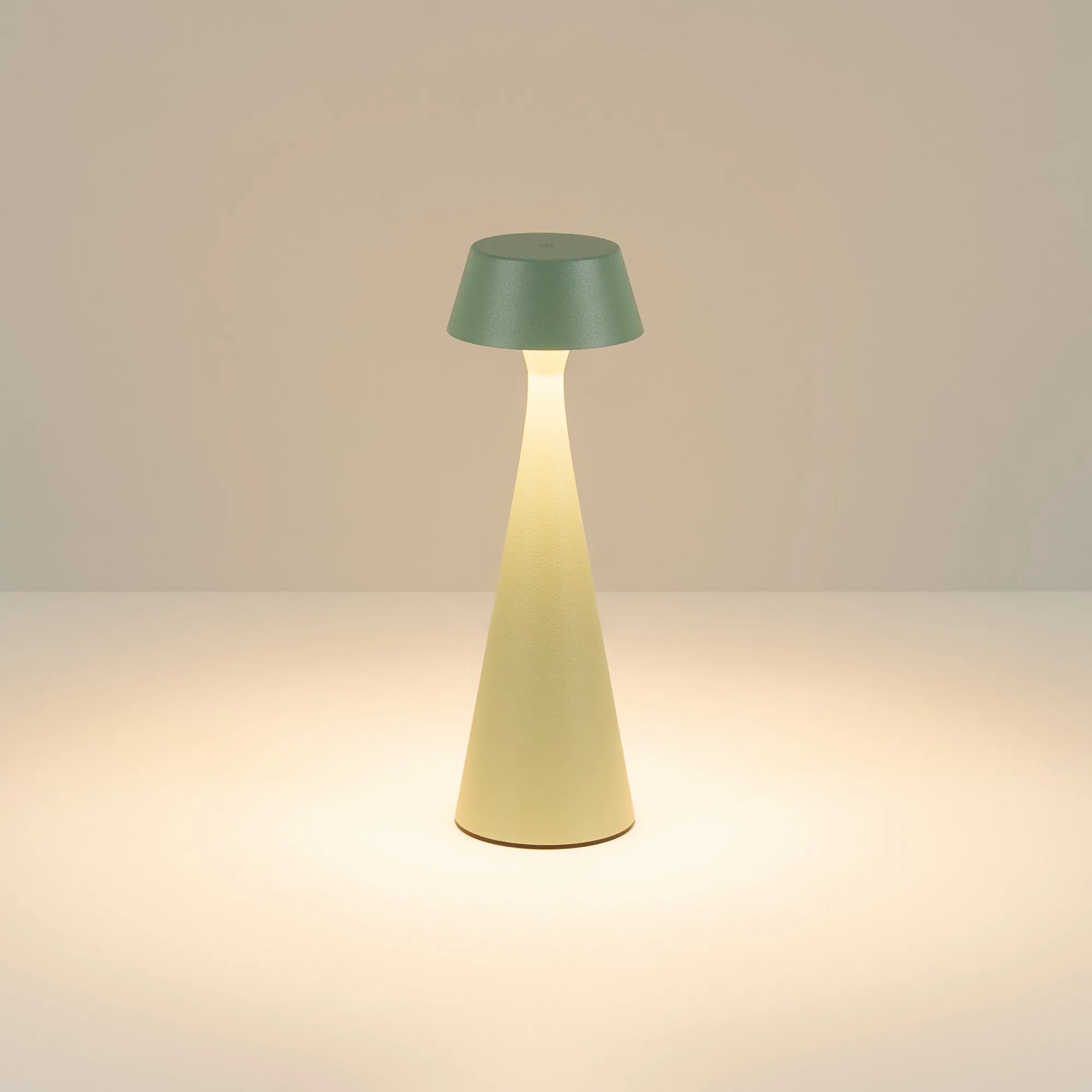 Настольный светильник со встроенным аккумулятором, 2Вт, алюминиевый корпус, цвет зеленый. Цвет ТЕПЛЫЙ БЕЛЫЙ 2200-2700-3000K, св.поток 110-130 лм, CRI(Ra)>80, угол 154°. Размер Ф80x242мм. IP54. Зарядка от сети переменного тока AC220-240V. Тип встроенного аккумулятора 2x2200мАч Li-ion, напряжение батареи 5V