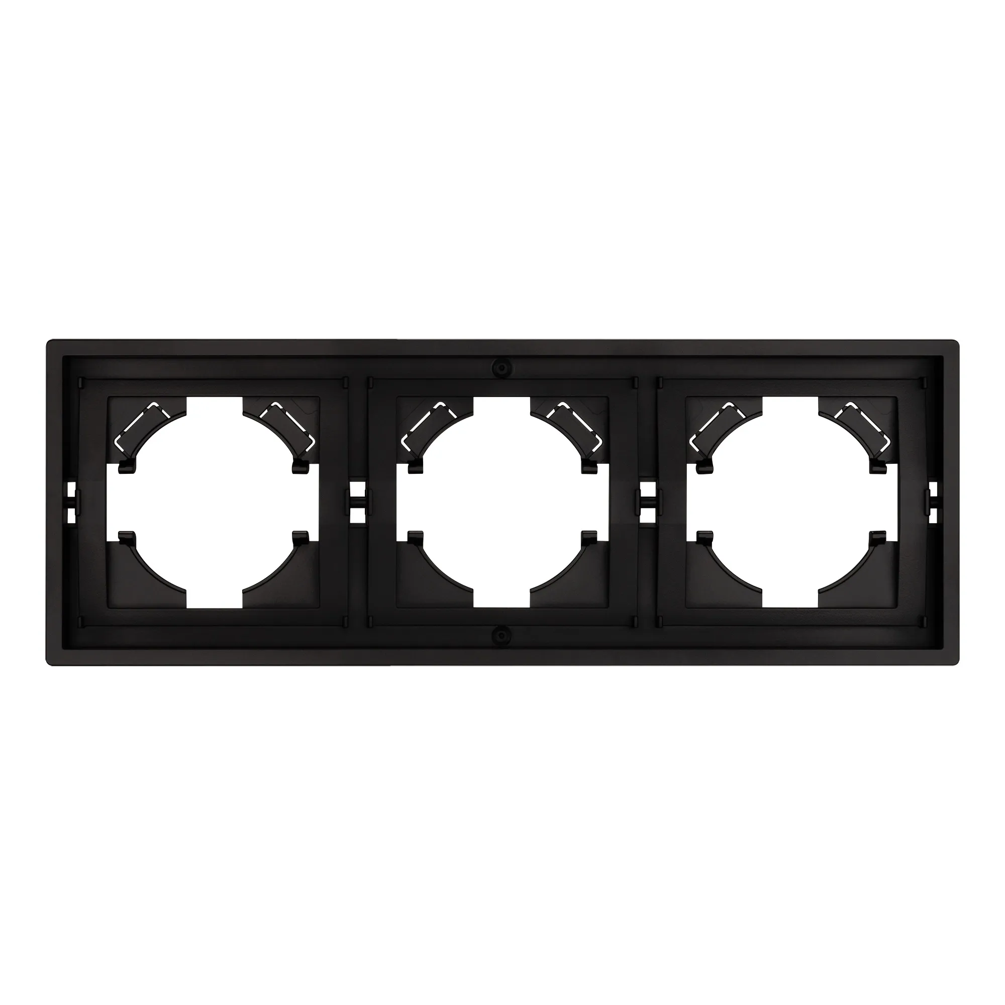 Рамка пластиковая на 3 поста, под встраиваемый механизм. Цвет - черный. Среднего уровня герметичности IP20. Ориентация монтажа горизонтальная. Габаритные размеры: длина 221 мм, ширина 80 мм, высота 9 мм. Гарантийный срок 12 мес.