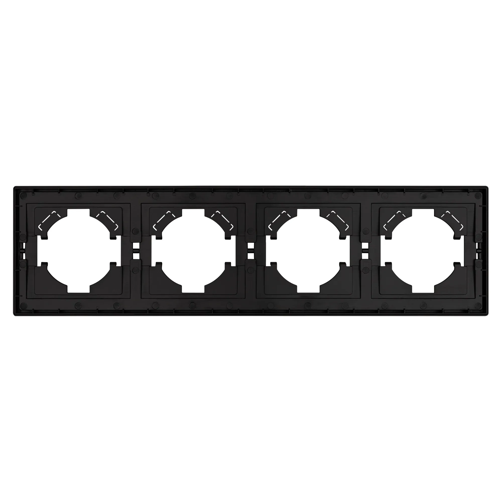 Рамка пластиковая на 4 поста, под встраиваемый механизм. Цвет - черный. Среднего уровня герметичности IP20. Ориентация монтажа горизонтальная.