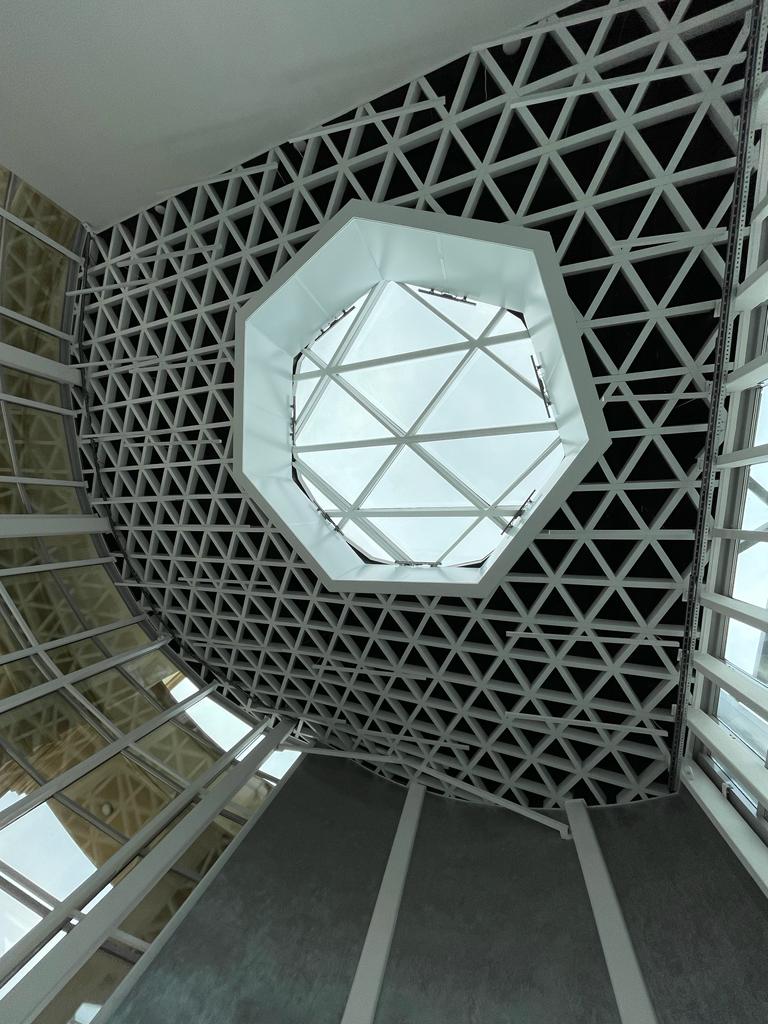 Важную роль в оформлении комплекса играют световые элементы. Светодиодные RGBW-прожекторы были установлены внутри стеклянных конструкций входного павильона музейного комплекса. За счет этого в темное время суток создается динамический эффект заливки помещения светом.