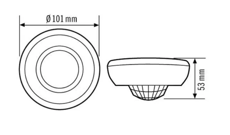 - Датчик движения с углом охвата 360° для потолочного монтажа