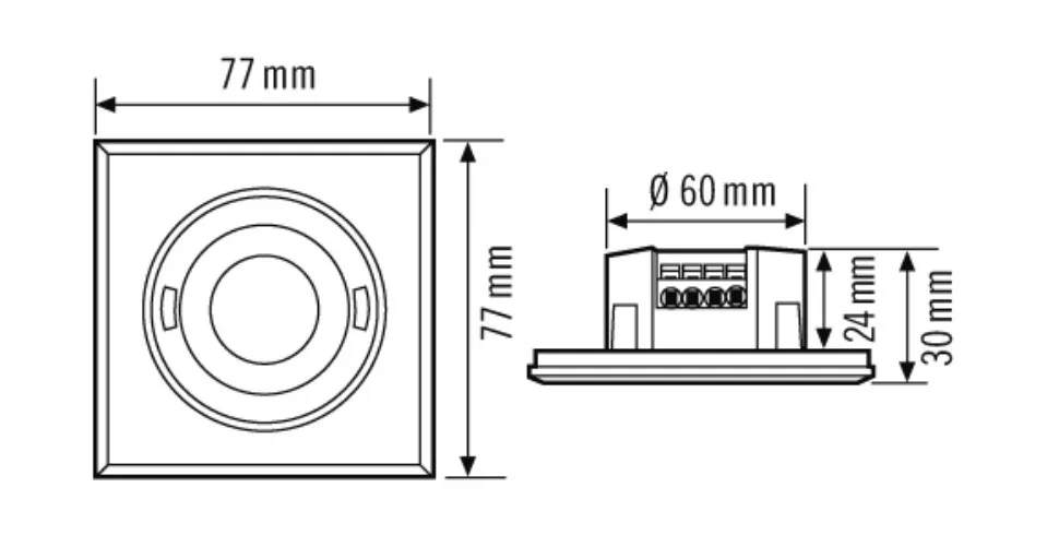 | Монтажные размеры | Глубина монтажа: 24 мм, Ø 60 мм |