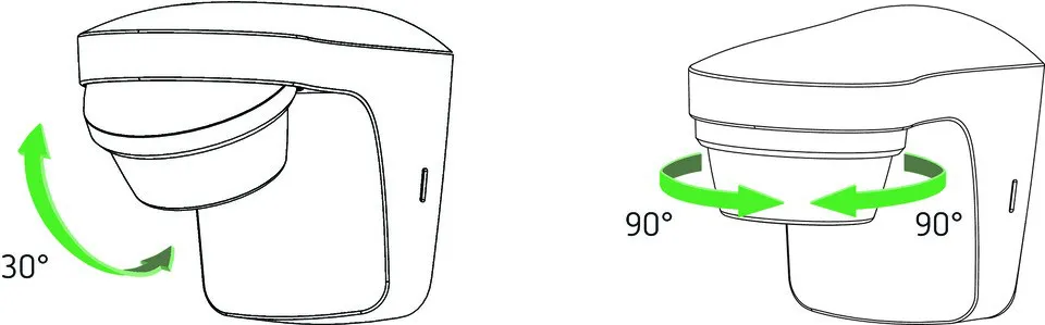 • Сенсорная головка датчика может быть повернута на ± 90° по горизонтале и на 30° вниз