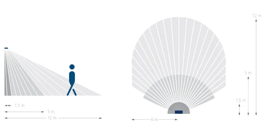 • Отдельная зона обнаружения непосредственно под датчиком (защита от «подползания»)