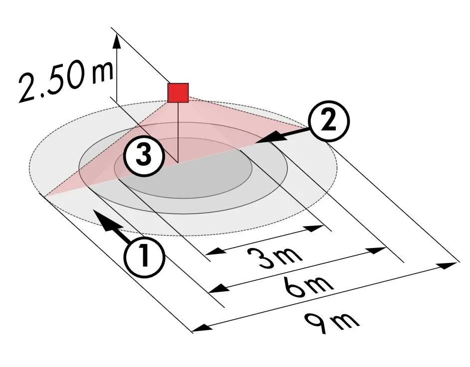 • Дальность действия перпендикулярно макс. Ø 9 м