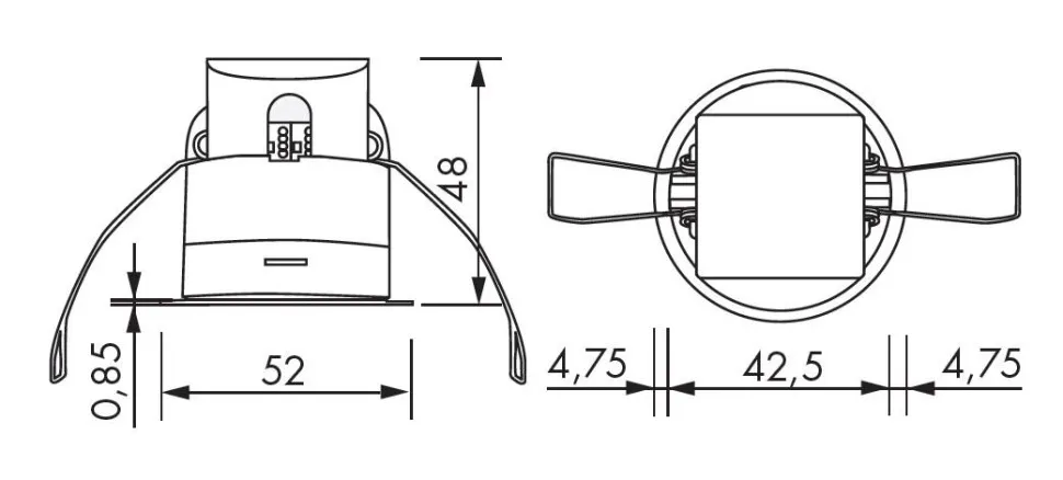 • Пружинные зажимы для легкой и быстрой установки в подшивные потолки
