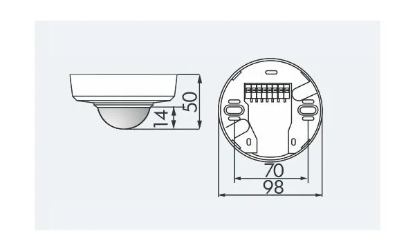 - Дистанционно управляемый потолочный датчик присутствия в исполнении ведущего устройства для открытого монтажа, с круговым диапазоном обнаружения