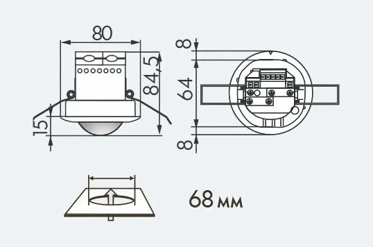• Дистанционно управляемый потолочный датчик присутствия PD2-M-DIM в исполнении для диммирования света для скрытого монтажа в подвесной потолок, с круговым диапазоном обнаружения