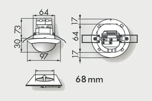 - Дистанционно управляемый потолочный групповой датчик присутствия PD4-M-DALI/DSI-1C в исполнении ведущего (Master) устройства, для скрытого монтажа в подвесной потолок, с интерфейсом DALI и круговым диапазоном обнаружения и дальностью действия около 24 м
