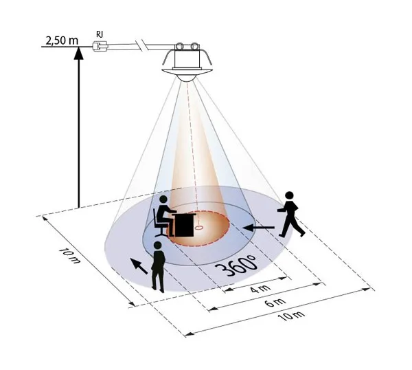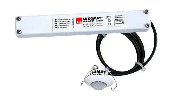 - Дистанционно управляемый потолочный мини-датчик присутствия PD9-M-DIM-FC в исполнении для диммирования света, для внутреннего применения, в исполнении ведущего устройства, с круговым диапазоном обнаружения