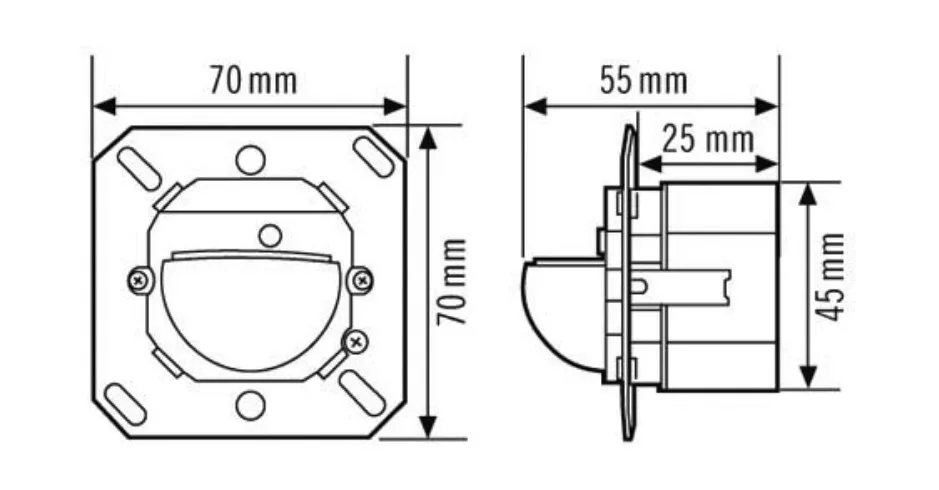 Примерные Длина 70 мм x Ширина 70 мм x Высота/глубина 55 мм