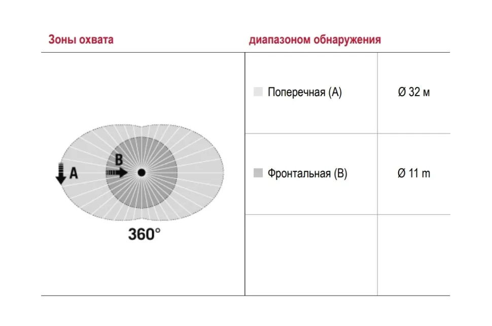 | диапазоном обнаружения Фронтально | Ø 11 м |