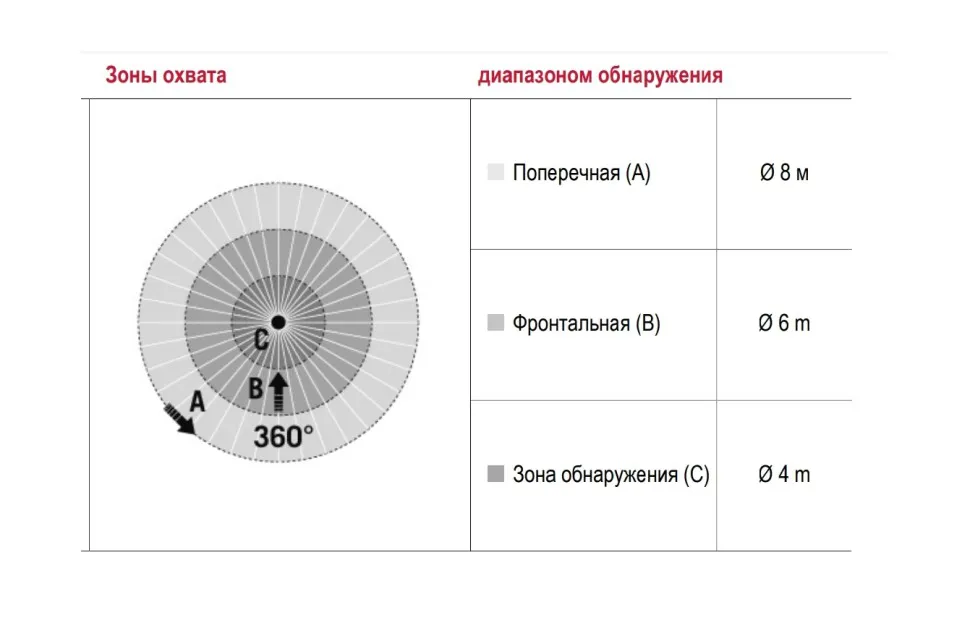 диапазоном обнаружения Фронтально Ø 6 м