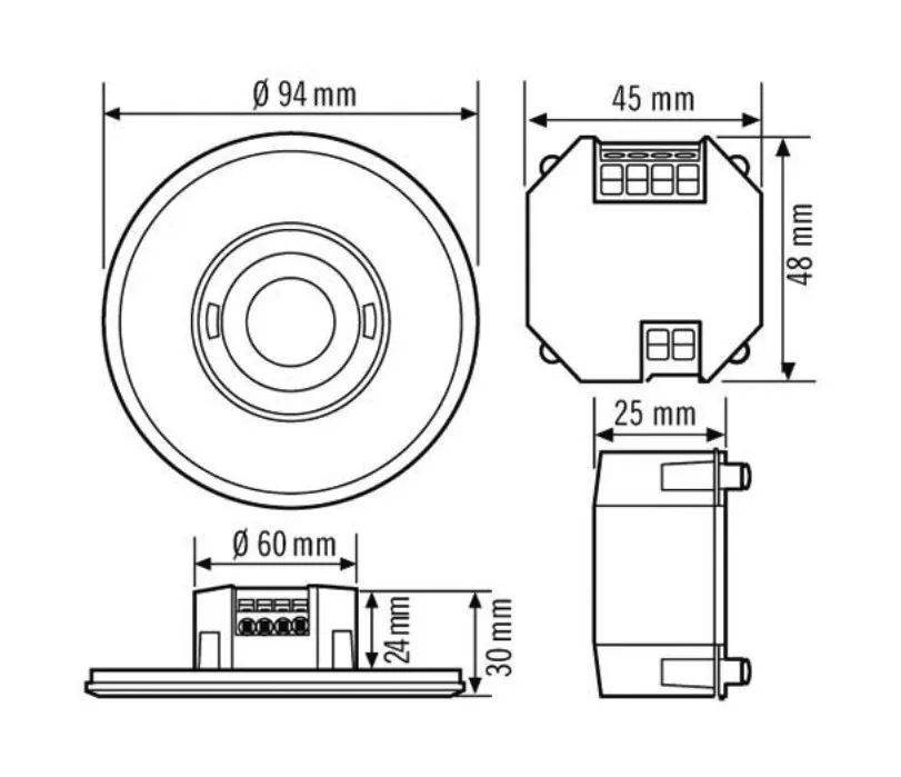 | Монтажные размеры | Глубина монтажа: 24 мм, Ø 60 мм |