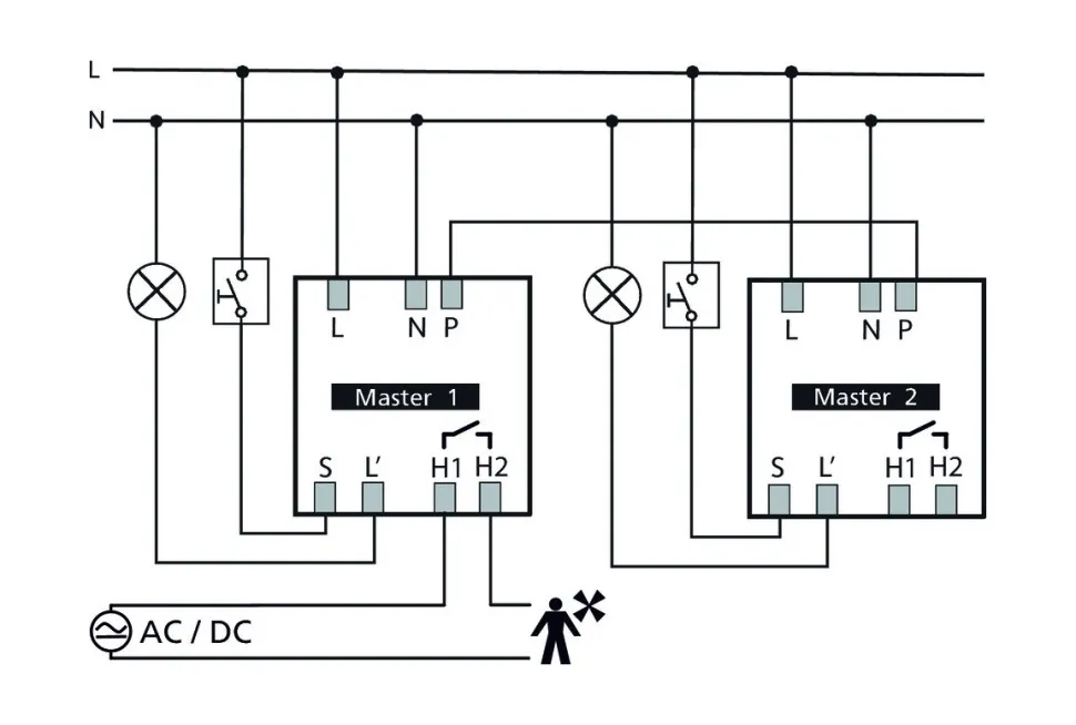 • Возможность подключения кнопок или выключателей для ручного управления освещением; автоматическое распознавание подключенных кнопок/выключателей