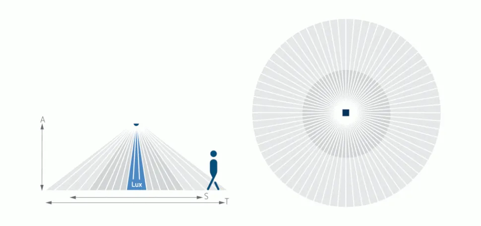• Круглая зона обнаружения 360°, до Ø 9 m (64 кв.м)