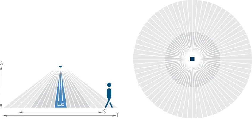 - Круглая зона обнаружения 360°, до Ø 9 m (64 кв.м)