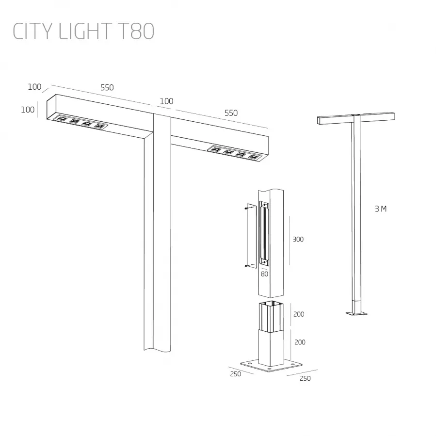3 CityLight T80 T-образный светильник. Опора - в комплекте поставки. 80 Вт 11600 Лм 4000К / 3000К 1200*100*3000мм