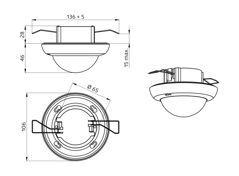 - Подходит для монтажа в подвесных потолках и скрытого монтажа