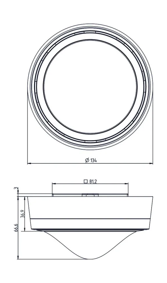 - Квадратная зона обнаружения 360°, 9 x 9 м (81 кв.м ) при высоте установки 3 м