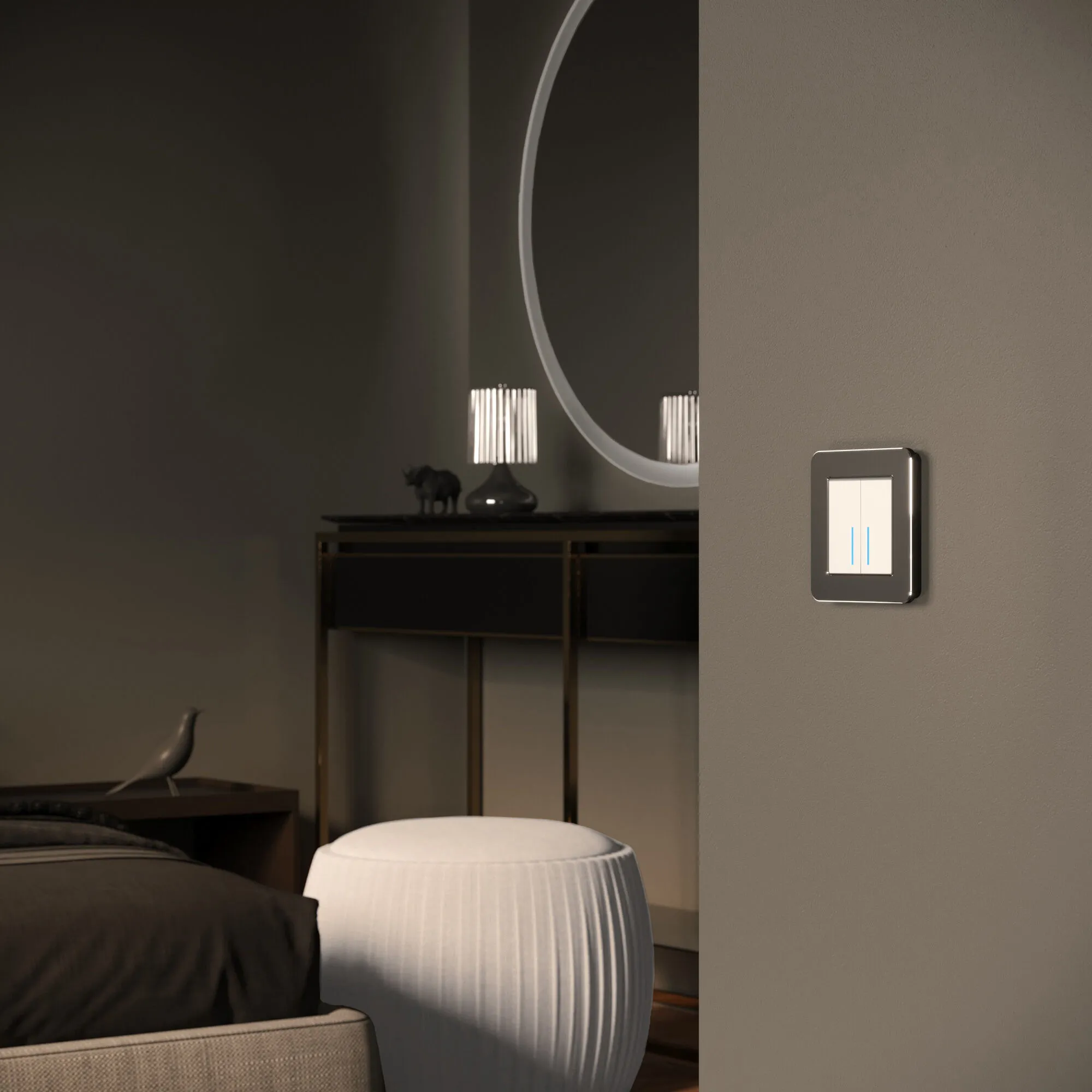 Platinum — коллекция рамок из литого анодированного алюминия. Сатиновая поверхность с шероховатой фактурой и изящные акцентные фаски на гранях создают премиальный дизайн, который подчеркивается благодаря увеличенным размерам рамки — 95×95 мм.