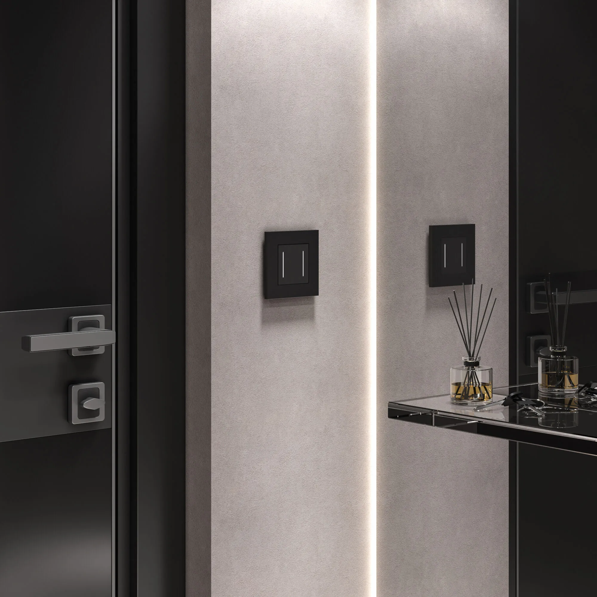 Серия Slab представлена моделями от одного до четырех постов. Рамки предназначены как для горизонтального, так и для вертикального монтажа. Коллекция совместима с любыми встраиваемыми механизмами Werkel.