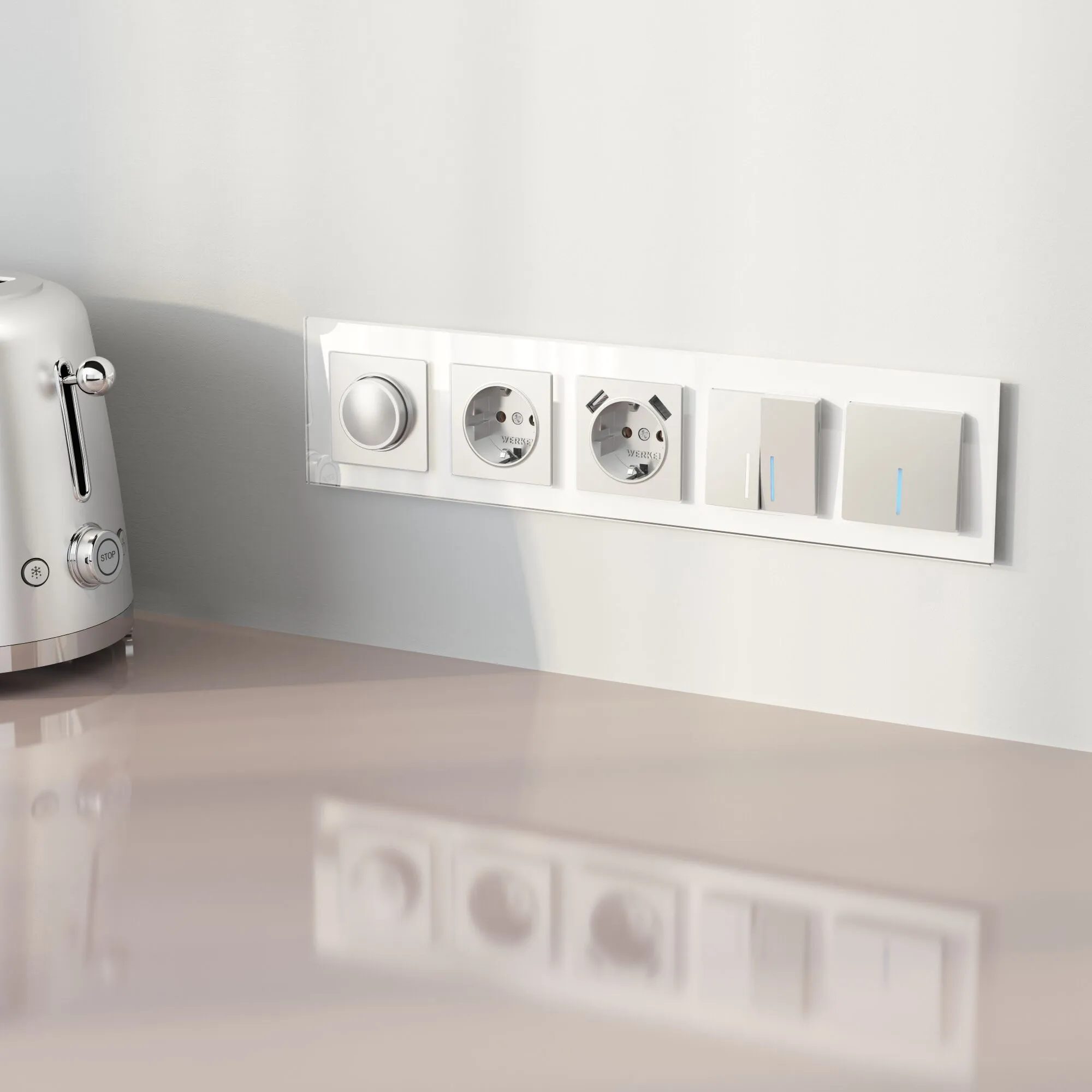 Рамка Favorit выполнена из закаленного стекла толщиной 5 мм. Идеально отшлифованные грани, подчеркнутые прямой фаской, создают необычайную игру света и придают дополнительный объем стеклу.