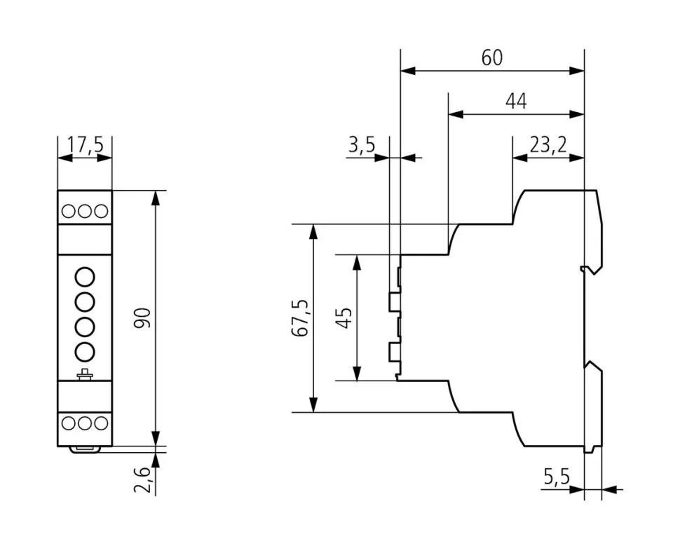 Падение обратно значению номинального входного напряжения <10,2 В AC/DC (в соответствии с EN 61812-1)