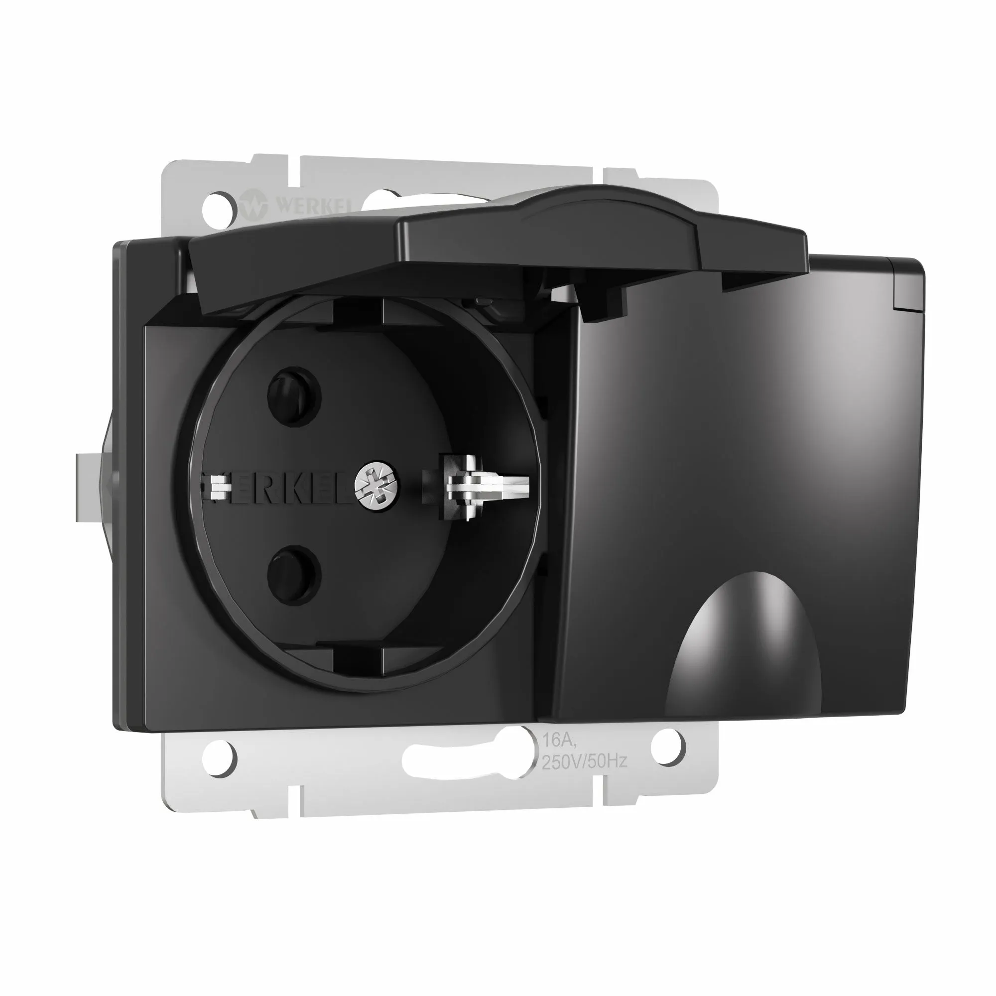 Розетка двойная влагозащ. с зазем. с защит. крышками и шторками (черный матовый) W1172208