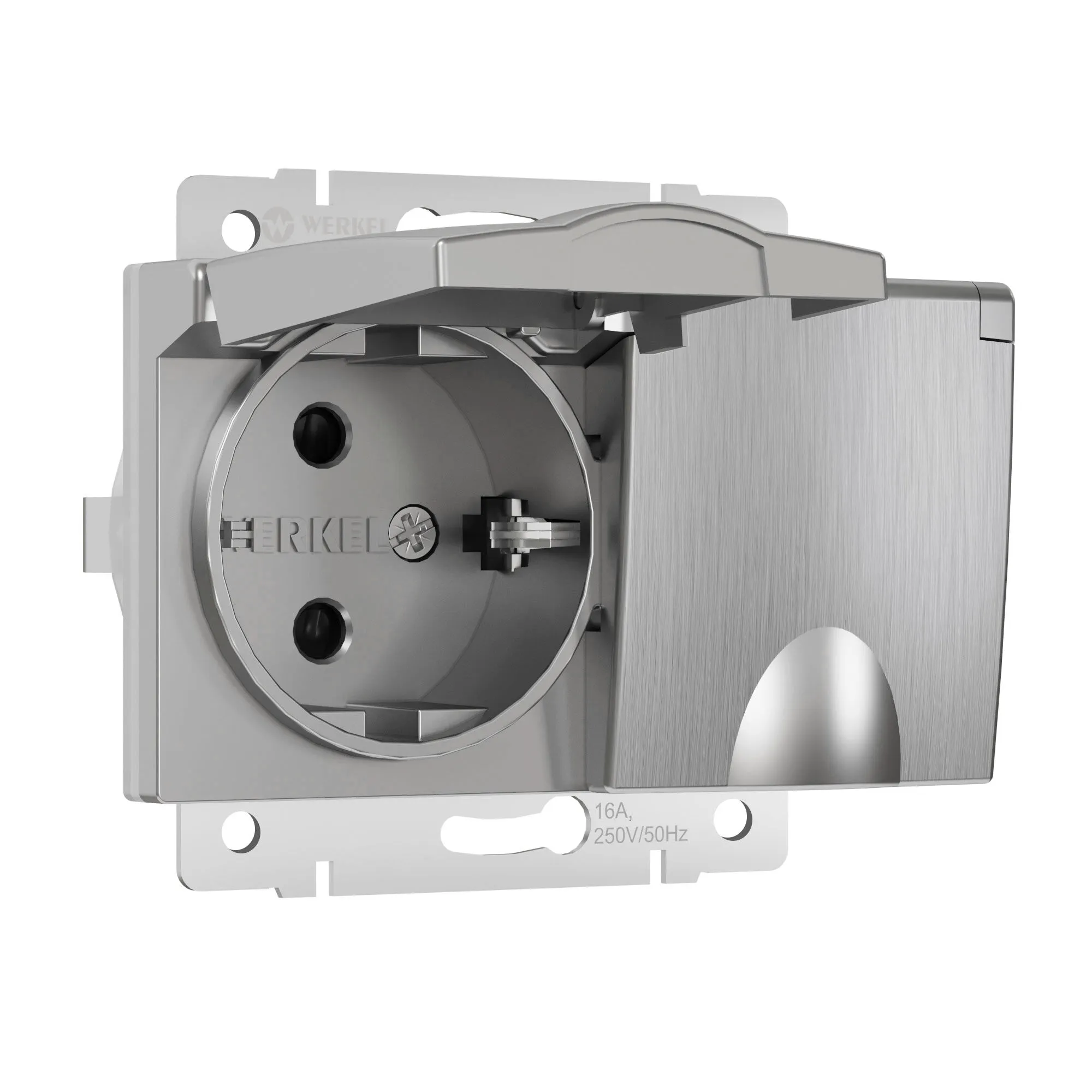 Розетка двойная влагозащ. с зазем. с защит. крышками и шторками (серебряный рифленый) W1172209