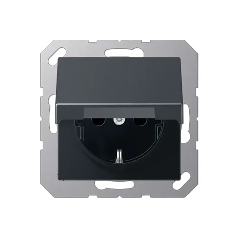 Розетка с заземлением и крышкой 16А 250В EcoProfi Deco антрацит EP421KLAN Jung