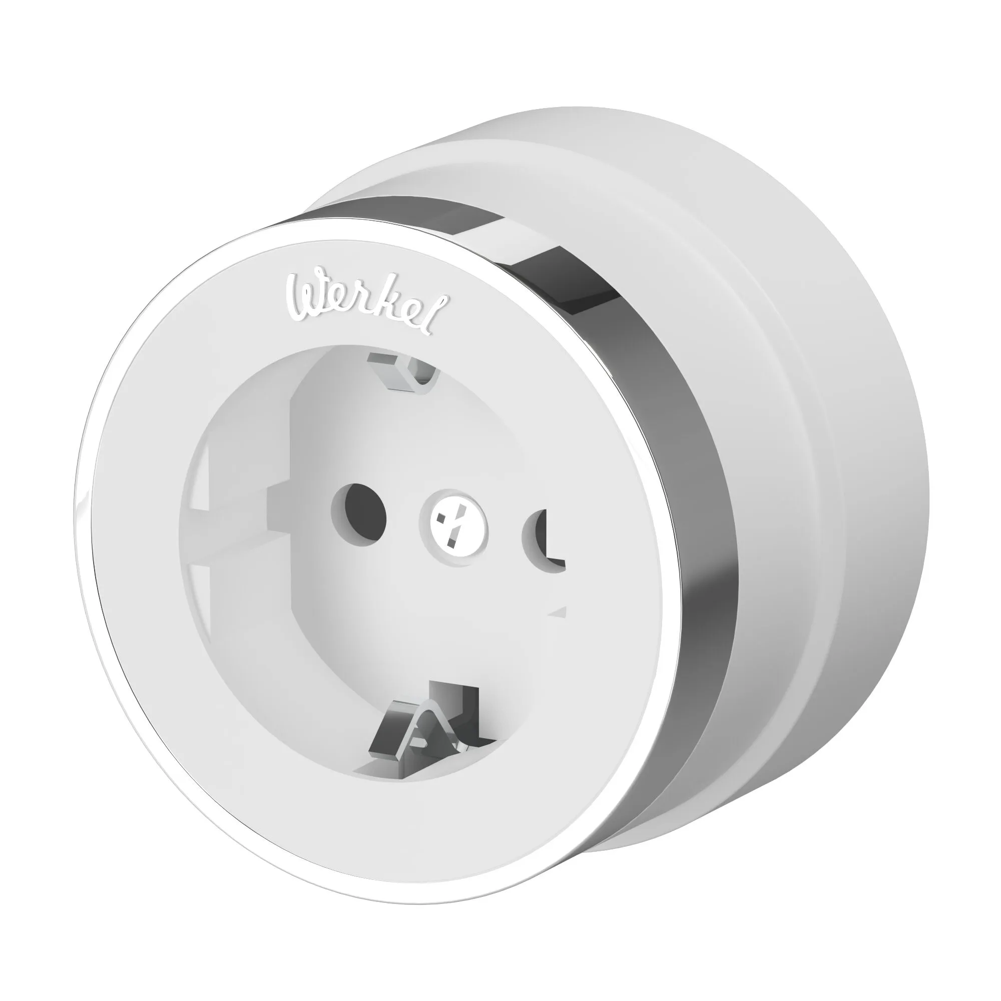 Дополнить образ помогут рамки Werkel из металла, стекла, и дерева, а так же аксессуары для накладного монтажа проводки.