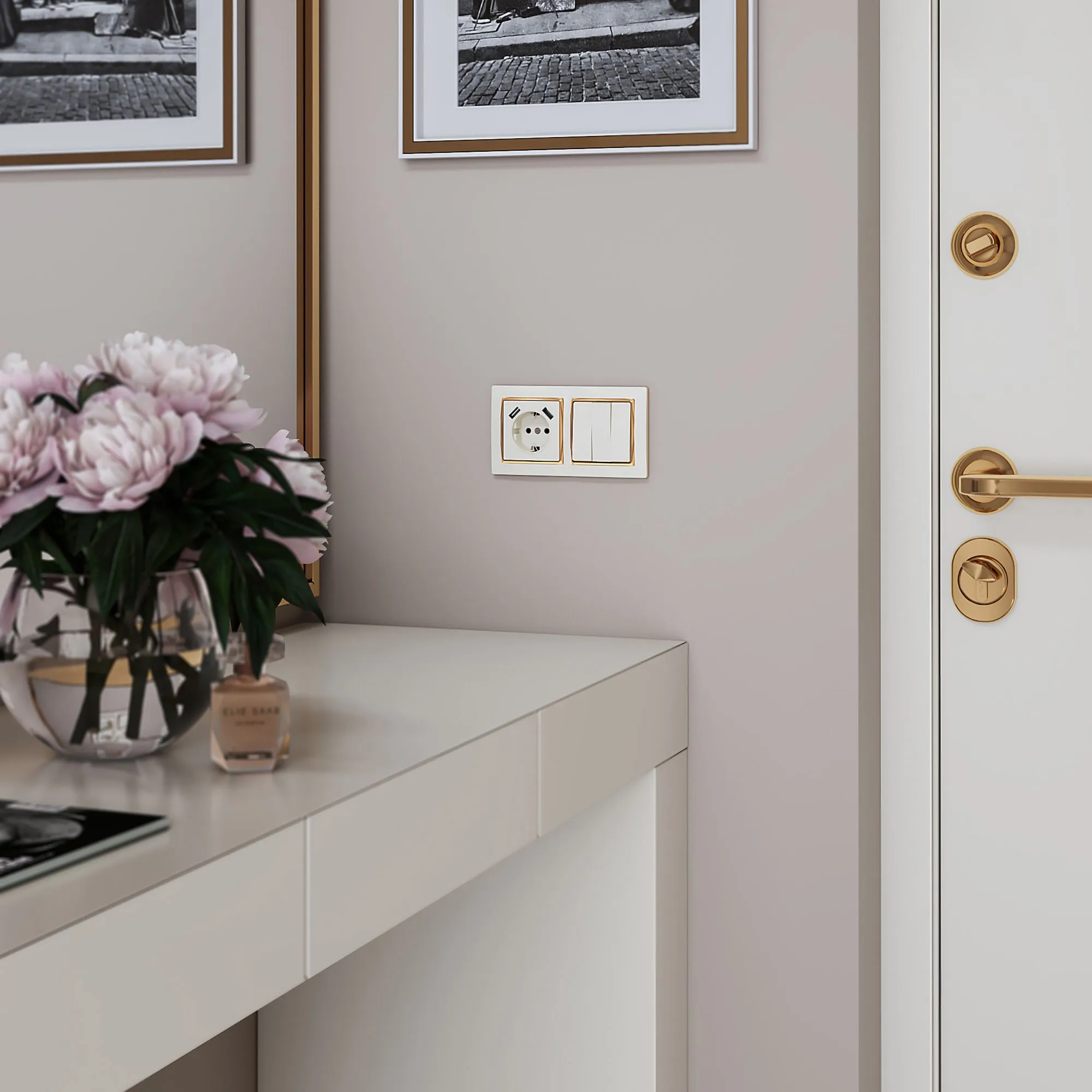 Розетка с заземлением, шторками и USBх2 (слоновая кость) W1171503