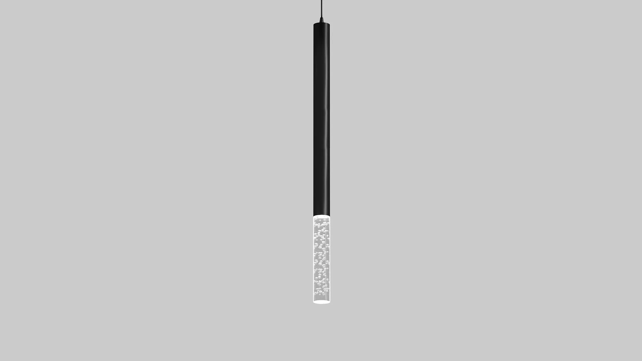 Миниатюрный подвесной светильник, диаметр всего 3 см. Идеален для подсветки  отдельных предметов интерьера. Рассеивающий стержень наполнен пузырьками воздуха,  что добавляет декоративный эффект светильнику. Длина AL корпуса 600мм, стержня 150мм, потолочная чаша в комплекте