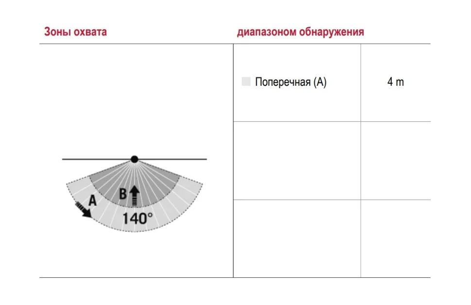 | диапазоном обнаружения поперек | 4 м |