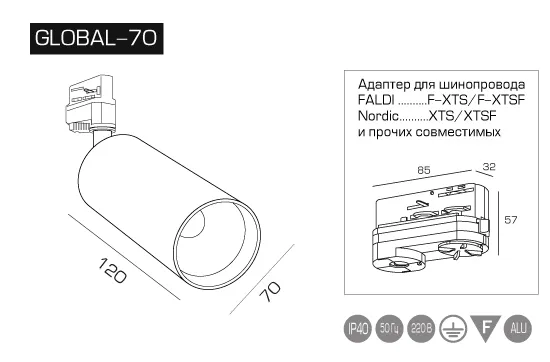 Светодиодный трековый светильник GLOBAL 70 для трехфазного шинопровода