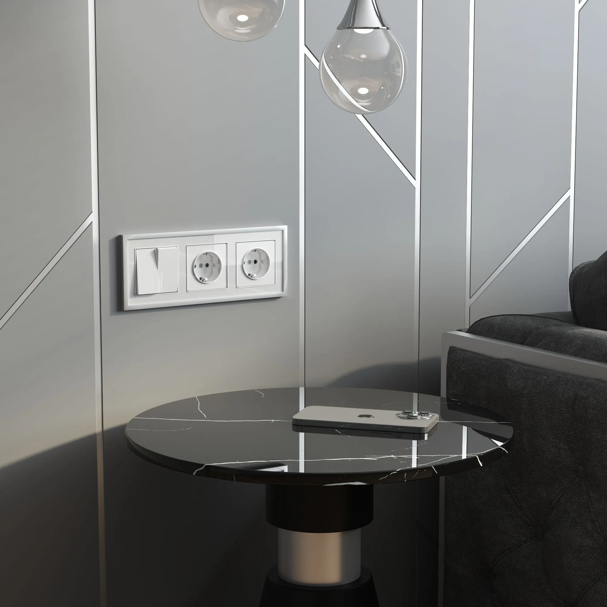 W1171141/ Розетка с заземлением и шторками (белый акрил) W1171141