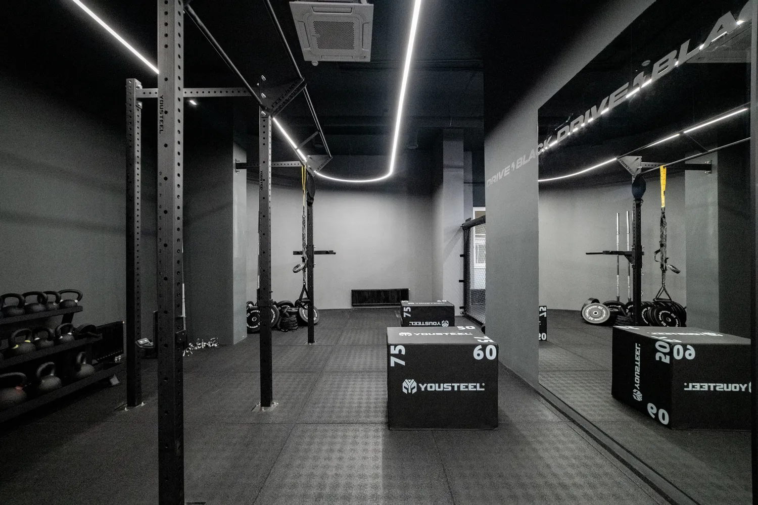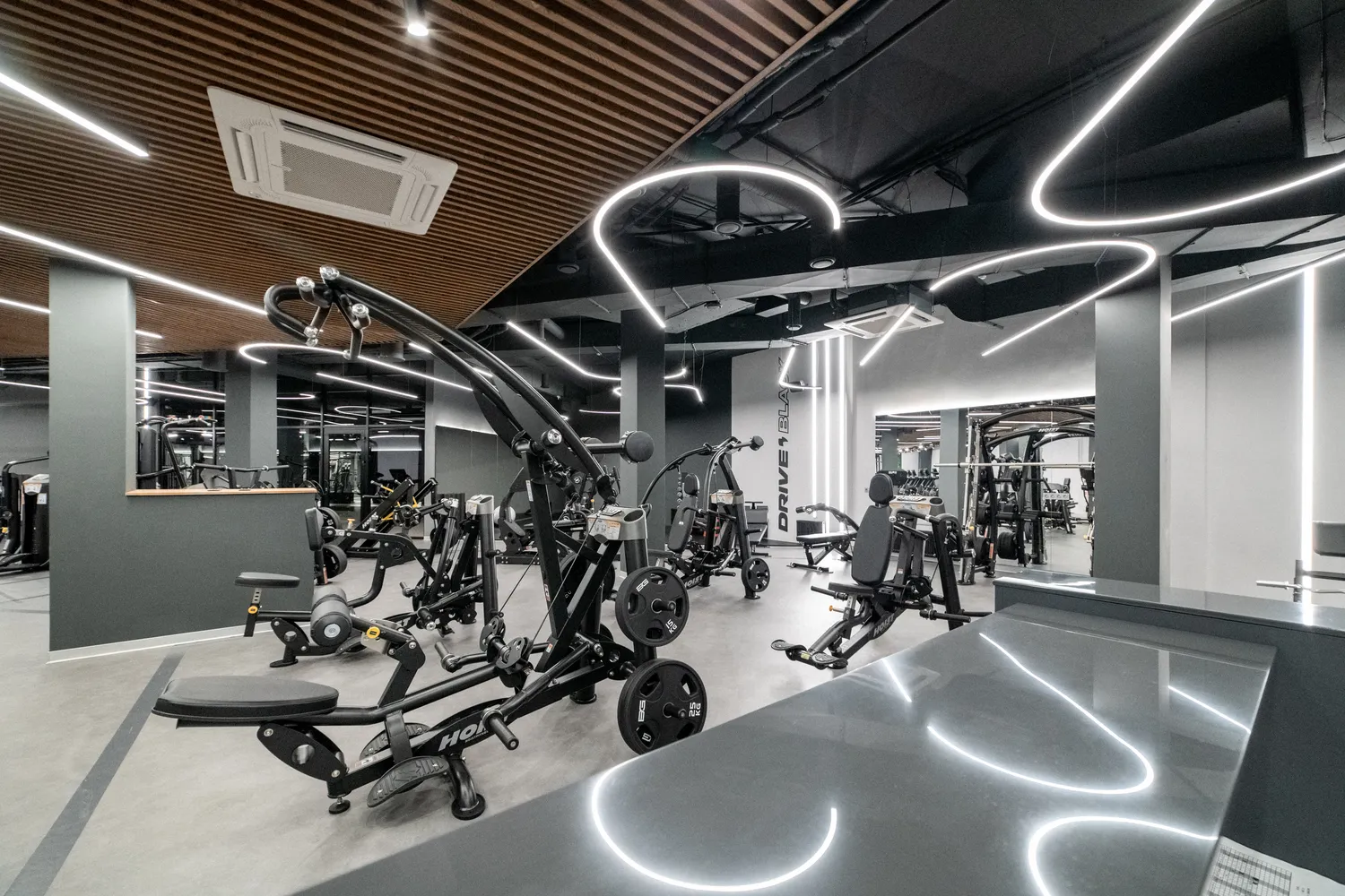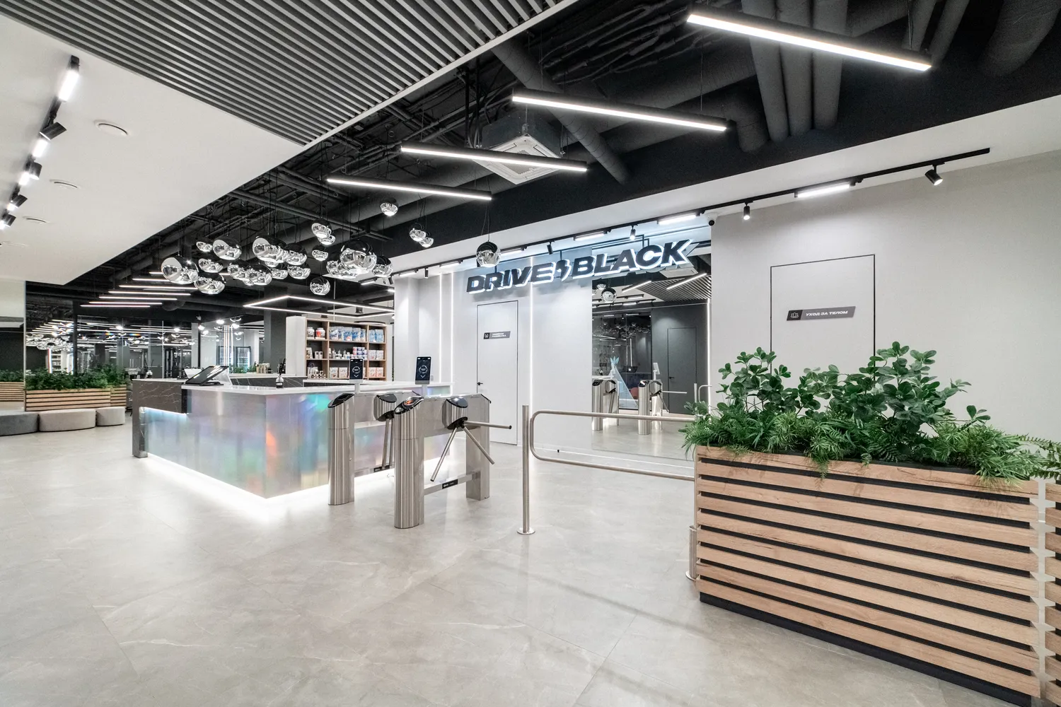 Фитнес-центр премиум-класса Drive Black  общей площадью 2346м2 расположился на цокольном этаже  ЖК Метрополис  в г. Красноярск и включает в себя бассейн, термальные SPA-зоны, тренажерный зал, залы групповых программ, детский клуб, зона единоборства , зона кроссфита. Индивидуально для каждой зоны было подобрано  освещение исходя из всех нюансов проводимых в них активностей.