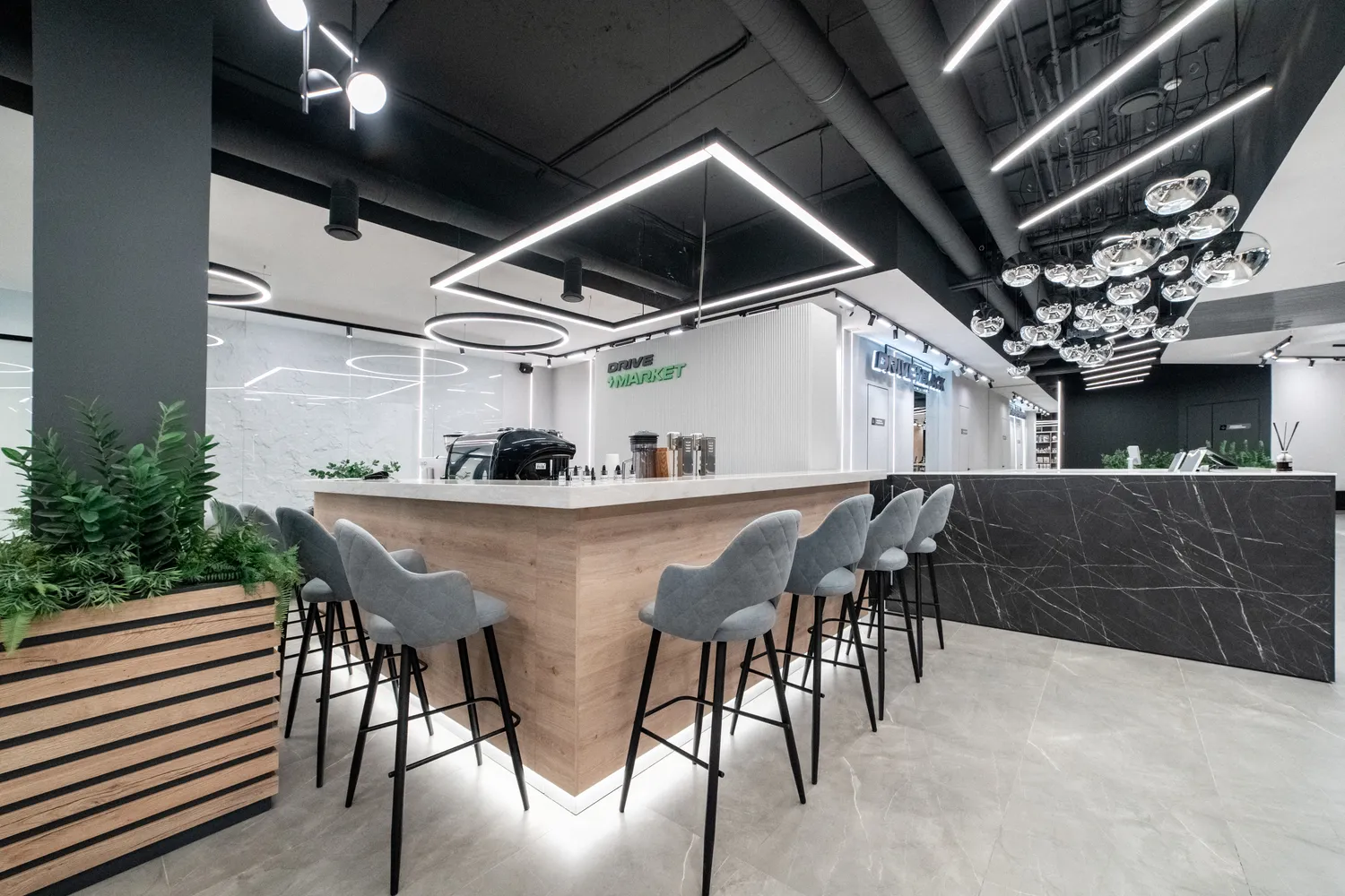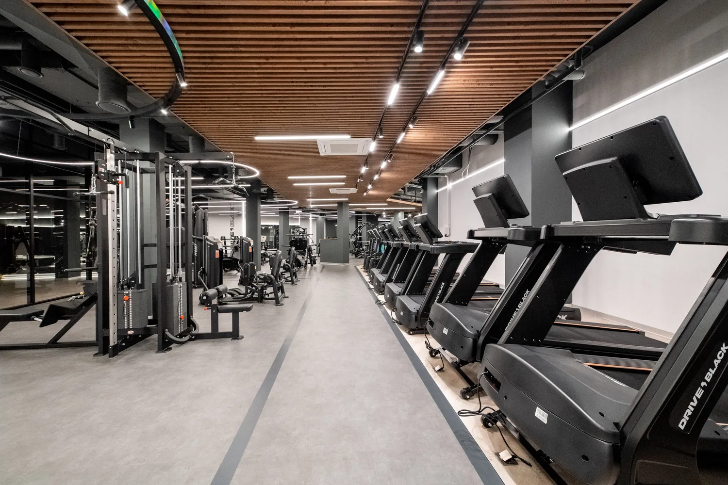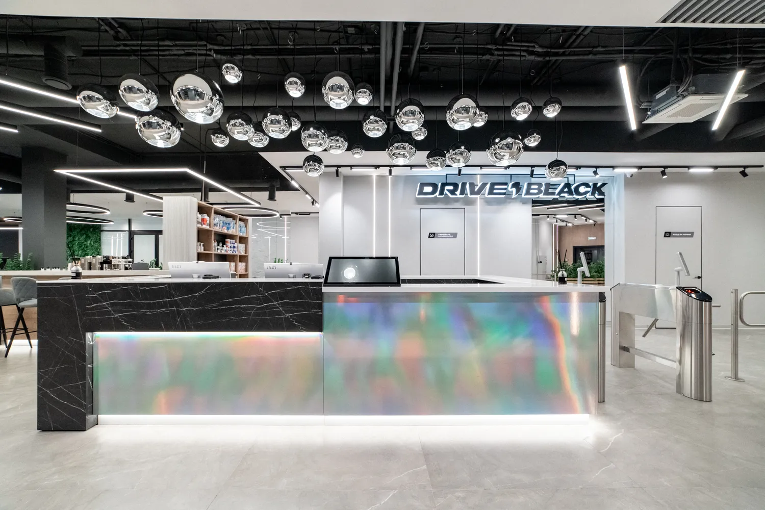 Фитнес-центр премиум-класса Drive Black  общей площадью 2346м2 расположился на цокольном этаже  ЖК Метрополис  в г. Красноярск и включает в себя бассейн, термальные SPA-зоны, тренажерный зал, залы групповых программ, детский клуб, зона единоборства , зона кроссфита. Индивидуально для каждой зоны было подобрано  освещение исходя из всех нюансов проводимых в них активностей.